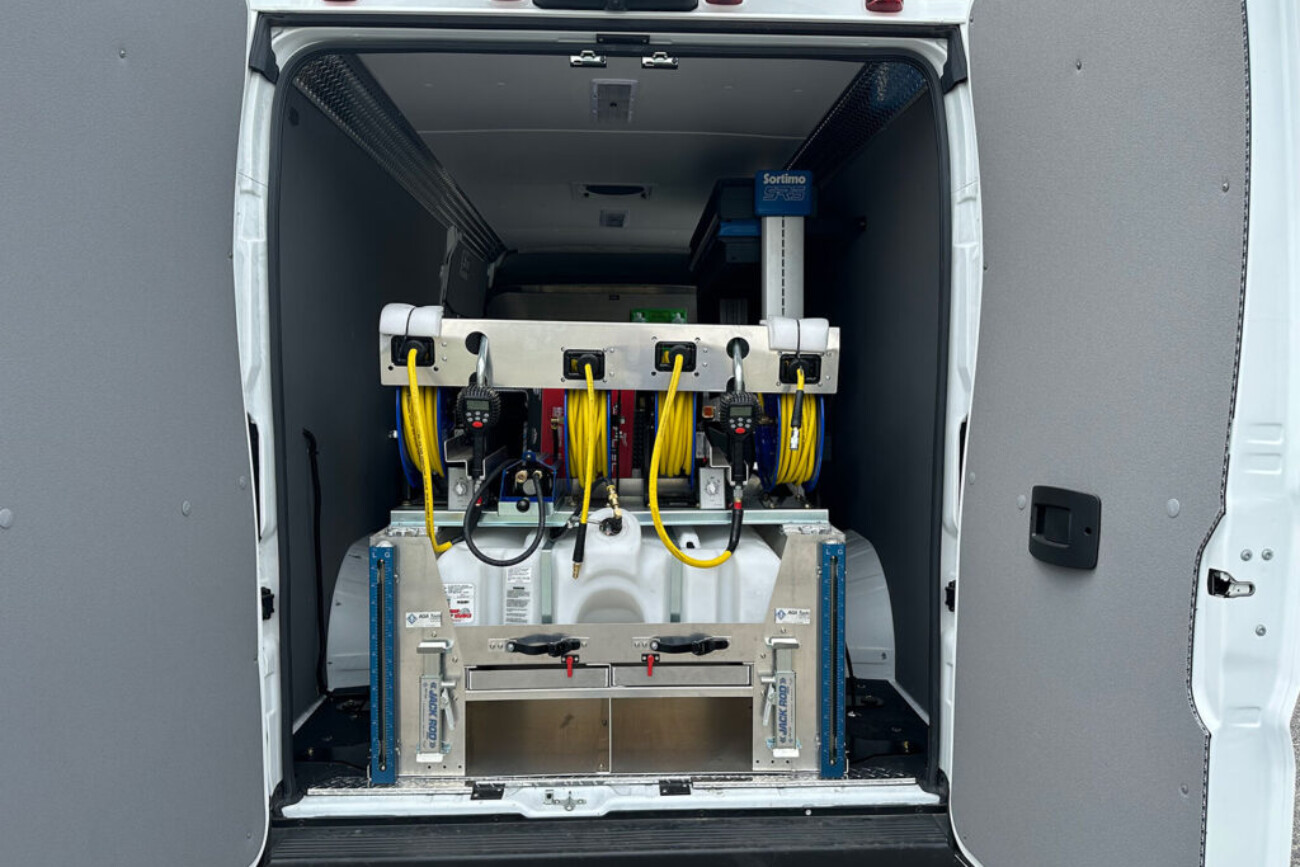 The larger capacity SO-440 Van is designed as a fixed build in a RAM 3500, Ford Transit van or a Mercedes-Benz Sprinter van. Its 40- gallon waste containment capacity allows you to service higher volumes, including fleets.